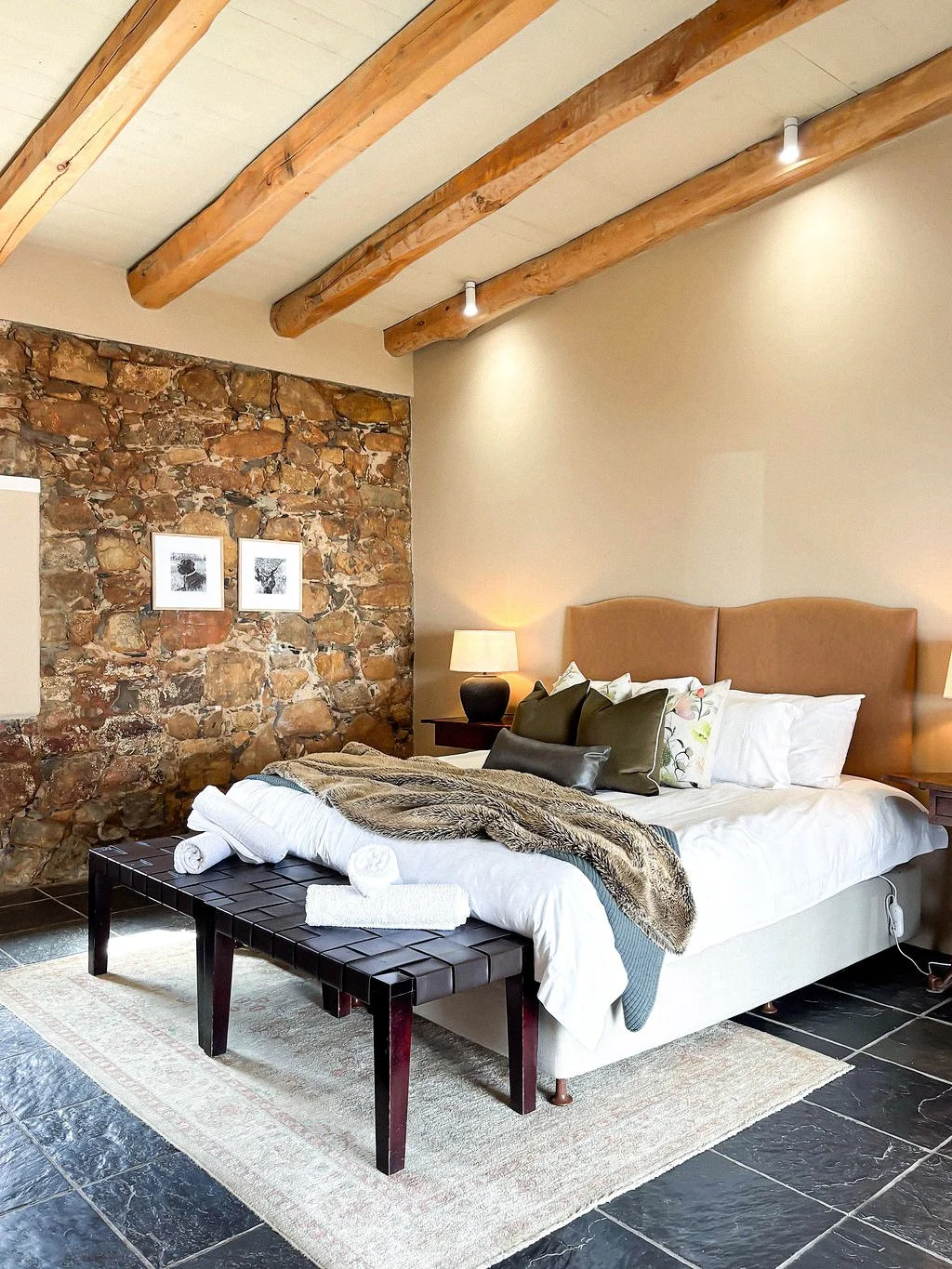 A comfortable and well-designed guestroom with views over the gardens and pool. Room Annie offers a calm, uncluttered space just minutes from central Stellenbosch — ideal for guests looking for convenience, quality, and a relaxed winelands stay.